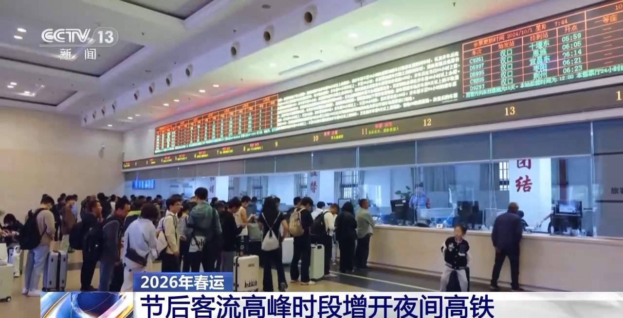 增开时段集中在2月20日(正月初四)至2月25日(正月初九)、3月4日(正月十六)至3月6日(正月十八),重点在京哈、京沪、京广等主要高铁干线通道安排增开夜间高铁列车。