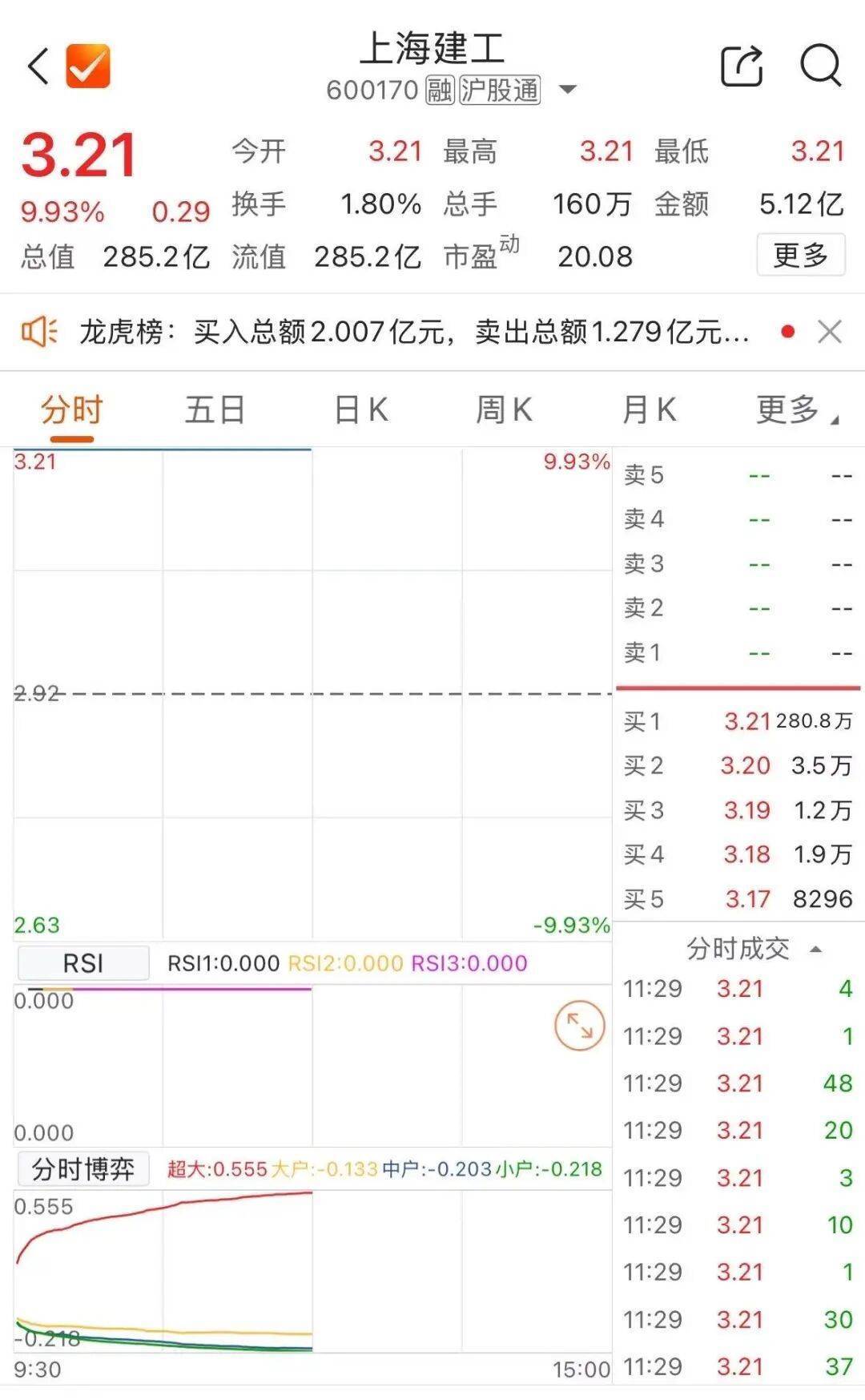9月16日早盘华锋优配网,上海建工再度涨停,实现三连板,股价报3.21元/股,总市值达到285亿元。